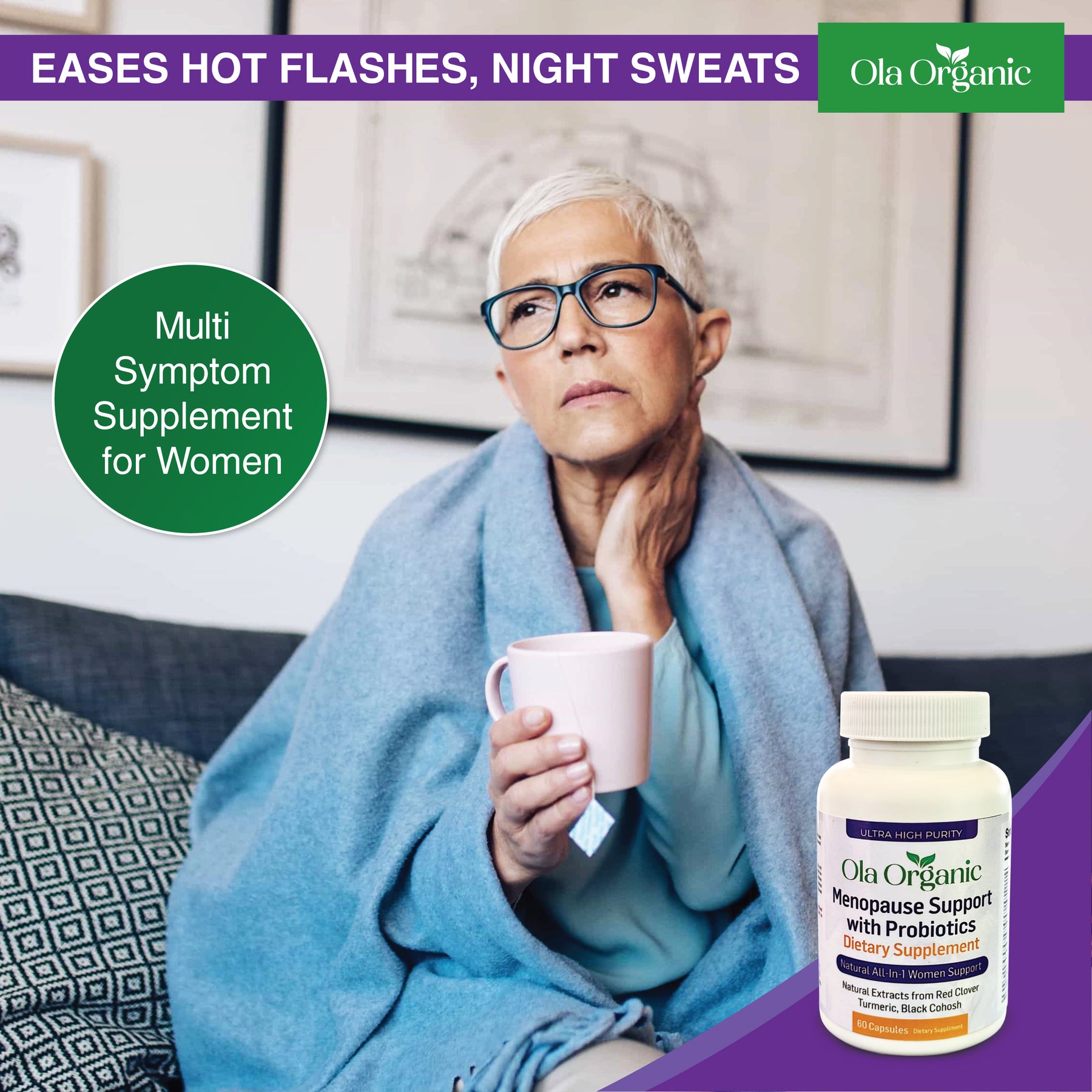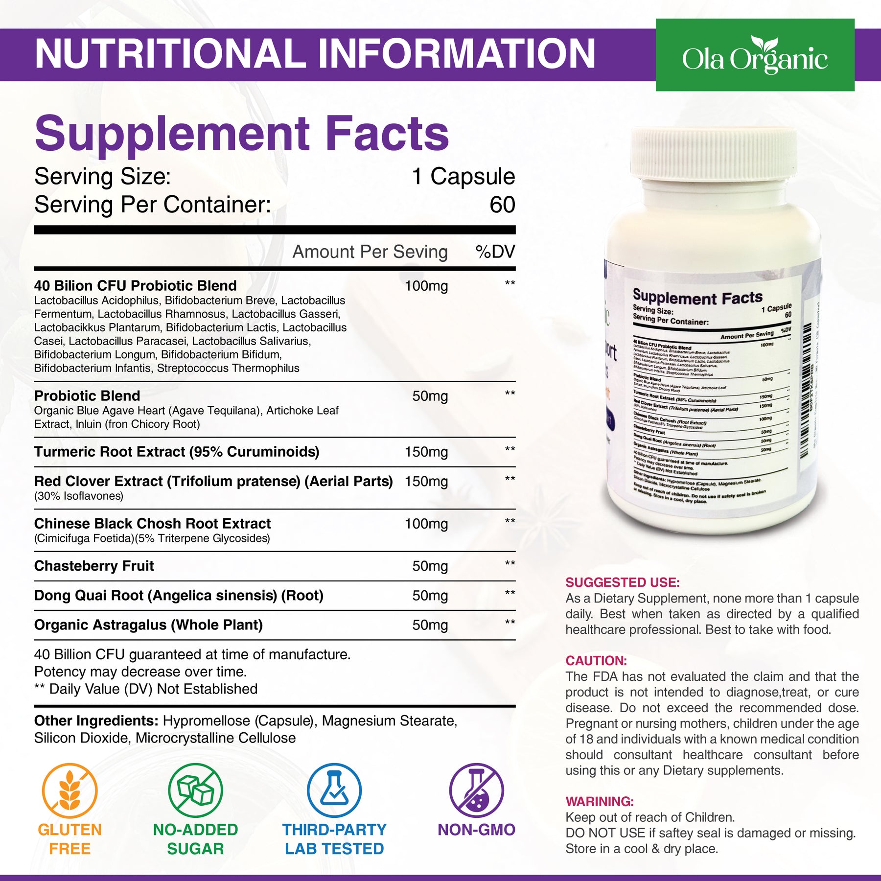 Ola Organic Menopause Support Supplement – Red Clover, Black Cohosh, Chasteberry, Dong Quai, Turmeric, Astragalus & Prebiotics – Supports Women’s Health & Midlife Balance – 60 Capsules